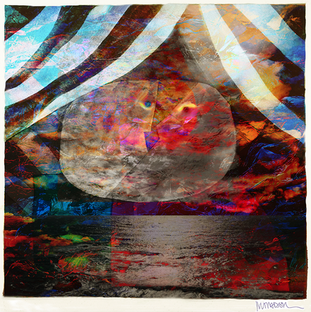 La fusión de imágenes originales agrega una capa adicional de complejidad y profundidad a estas pinturas digitales, creando una visión única y personal del